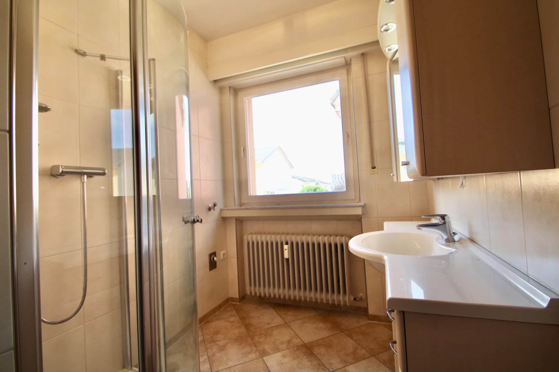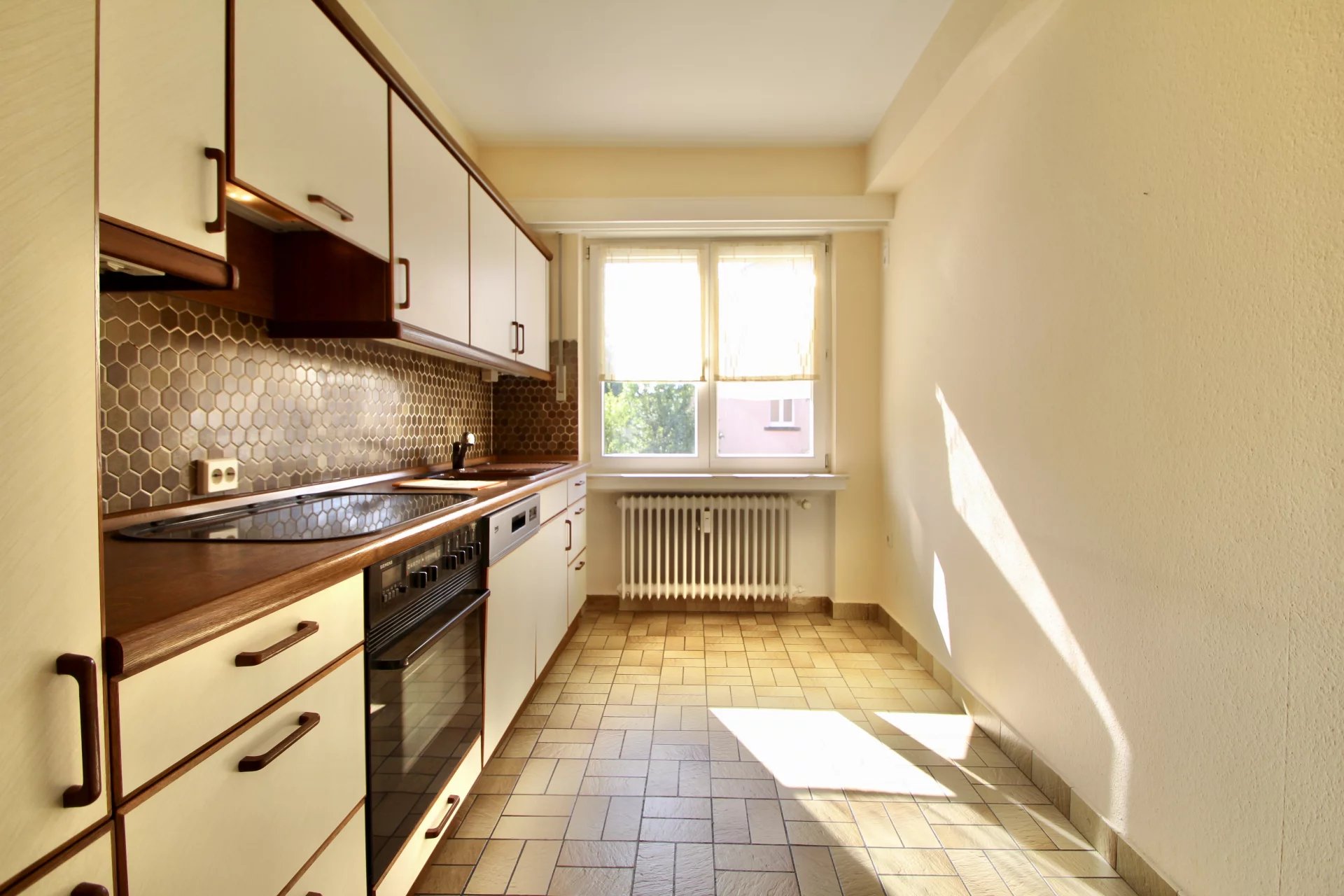 M. Spagnuolo (+ 352 621 510 569 ) de l'agence COPA Immobilière s.à.r.l., a le plaisir de vous proposer en exclusivité, cet appartement situé au rez-de-chaussée d'une petite résidence à 6 unités à Bettembourg. Construite dans une zone calme et près de toutes commodités(écoles, commerces, train, bus,...), ce bien saura vous convaincre de sa luminosité et des pièces spacieuses. L'appartement de 75 m2 se compose : D’une entrée avec un armoire encastré, d’un grand séjour très lumineux, d'une cuisine individuelle équipée, d'une salle de douche, de deux chambres à coucher, ainsi que d'un WC séparé. Une cave privative, un GARAGE BOX FERMÉ pour une grande voiture, un grenier privatif avec buanderie commune complètent ce bien. Détails techniques: - Chaudière à gaz - Fenêtres double-vitrage de 2003 - Toiture en ardoise - Façade en crépi - Volets manuels et électriques Pour tout renseignement, n'hésitez pas à contacter M. Spagnuolo (+ 352 621 510 569).
